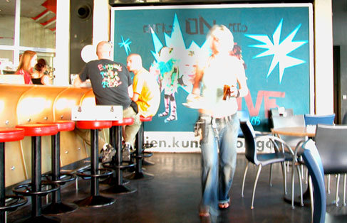 zeitgleich eine dazu realisierte Arbeit im öffentlichen Raum des Treibhaus Cafés zu präsentieren,