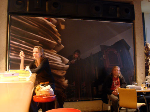 zeitgleich eine dazu realisierte Arbeit im öffentlichen Raum des Treibhaus Cafés zu präsentieren,